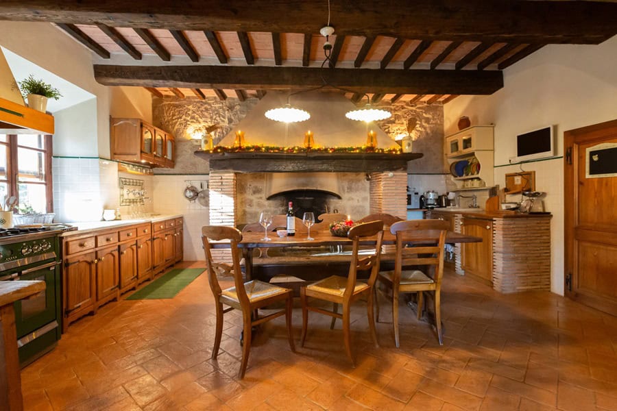 Tradition and a warm atmosphere inebriate the kitchen and the dining room, where we find the welcoming “Tuscan fireplace”.